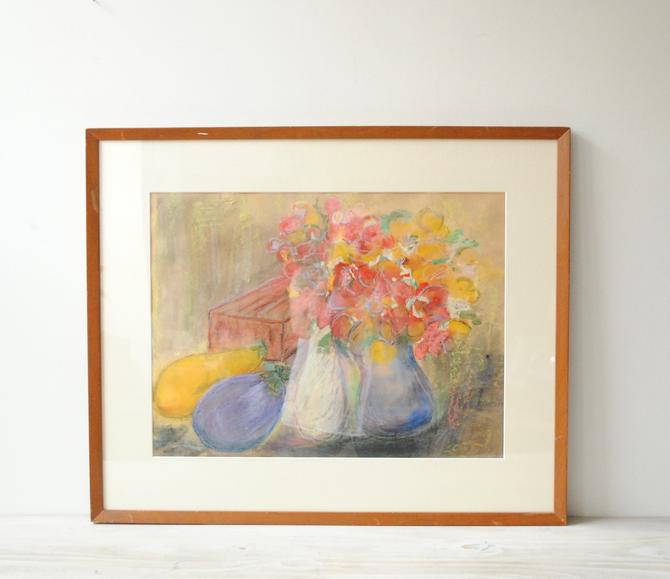 Artist M Nelsen Original Vintage Pastel Painting Flowers Unframed