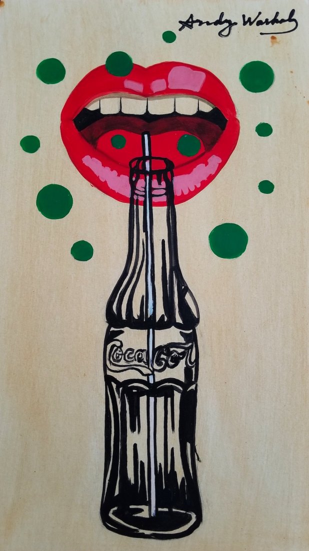Hot Applied Print On Wooden Panel Cocacola Pop Art By