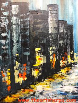 Original Painting By Debra Hurd Painting By Debra Hurdabstract Art Cityscape Painting Impressionist Lights Oil Painting Palette Knife Rainy City Street Scene Texture By Artist Debra Hurd On Dailypainters Com