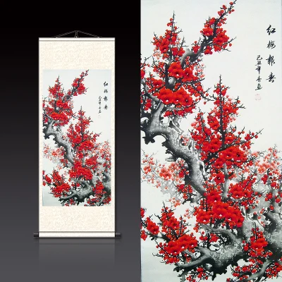 Hand Painting Traditional Chinese Red Plum Wall Art Blossoms