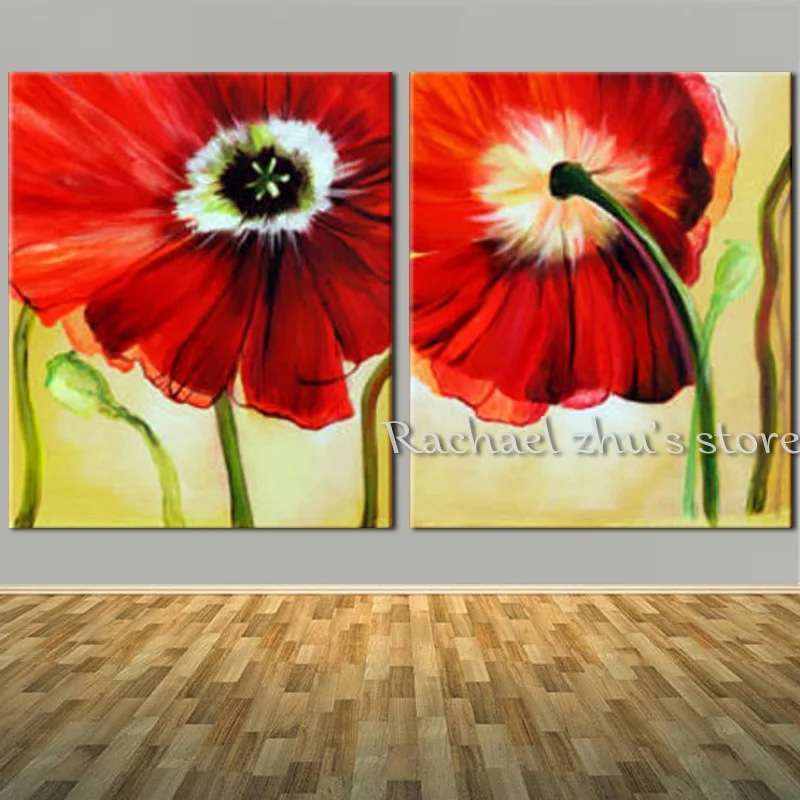 New Modern 100 Hand Painted Red Poppy Oil Painting On Canvas Two