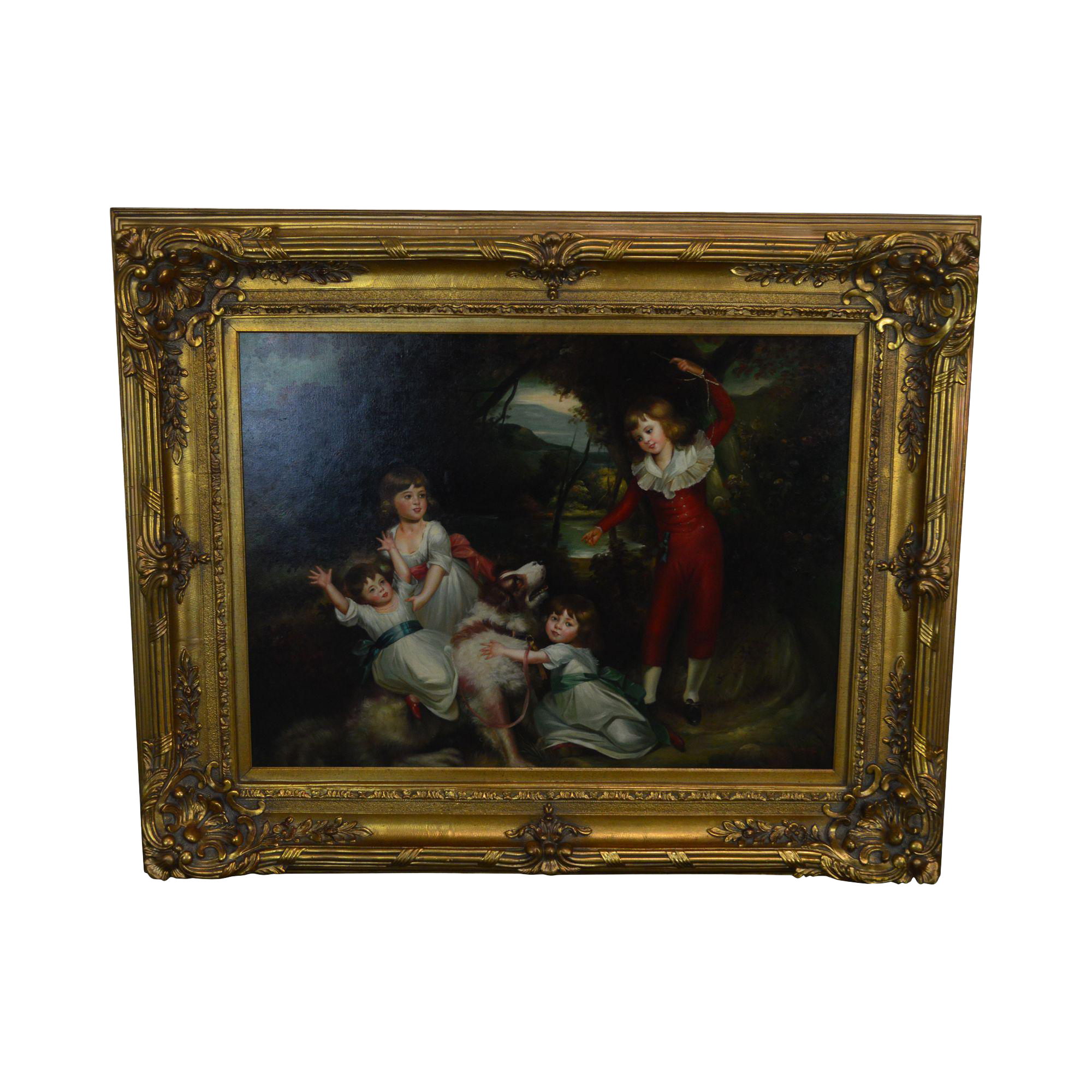 Victorian Renaissance Style Gilt Frame Oil Painting Of Children