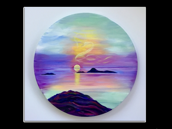 Painting Original Round Abstract Red Flowers Fluid Painting By