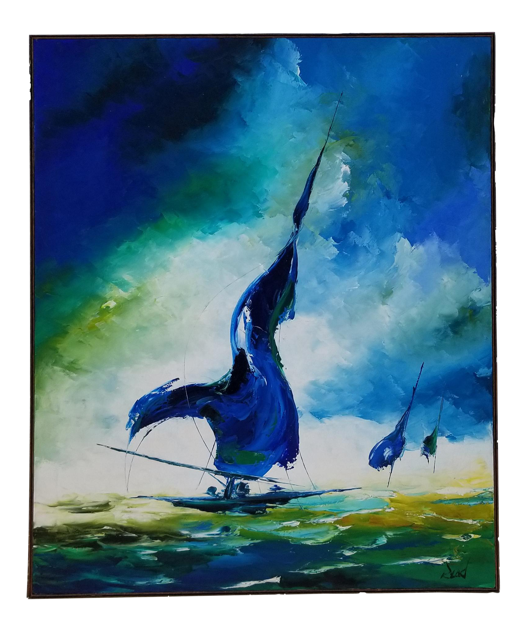 1970s Vintage Sailboat At Sea Acrylic On Canvas Painting Chairish