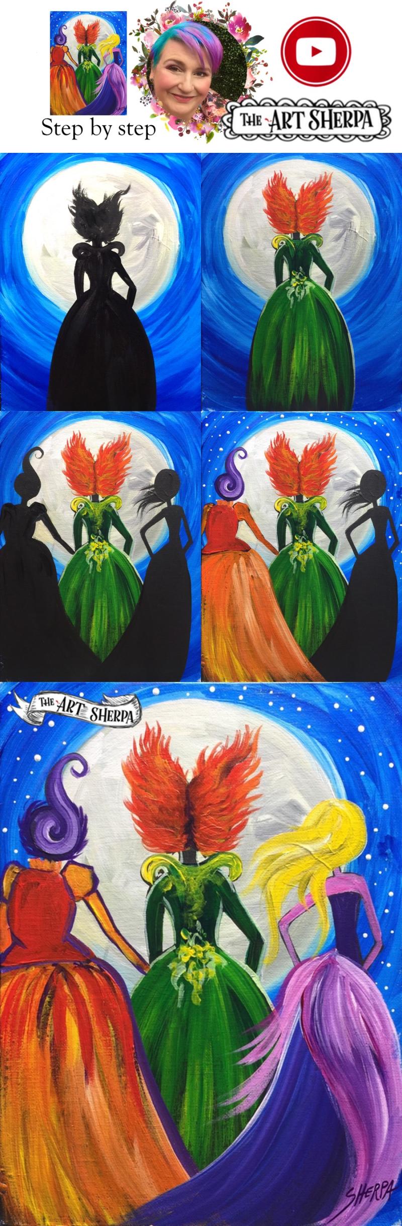 How To Paint With Acrylic On Canvas Hocus Pocus Witch Sisters
