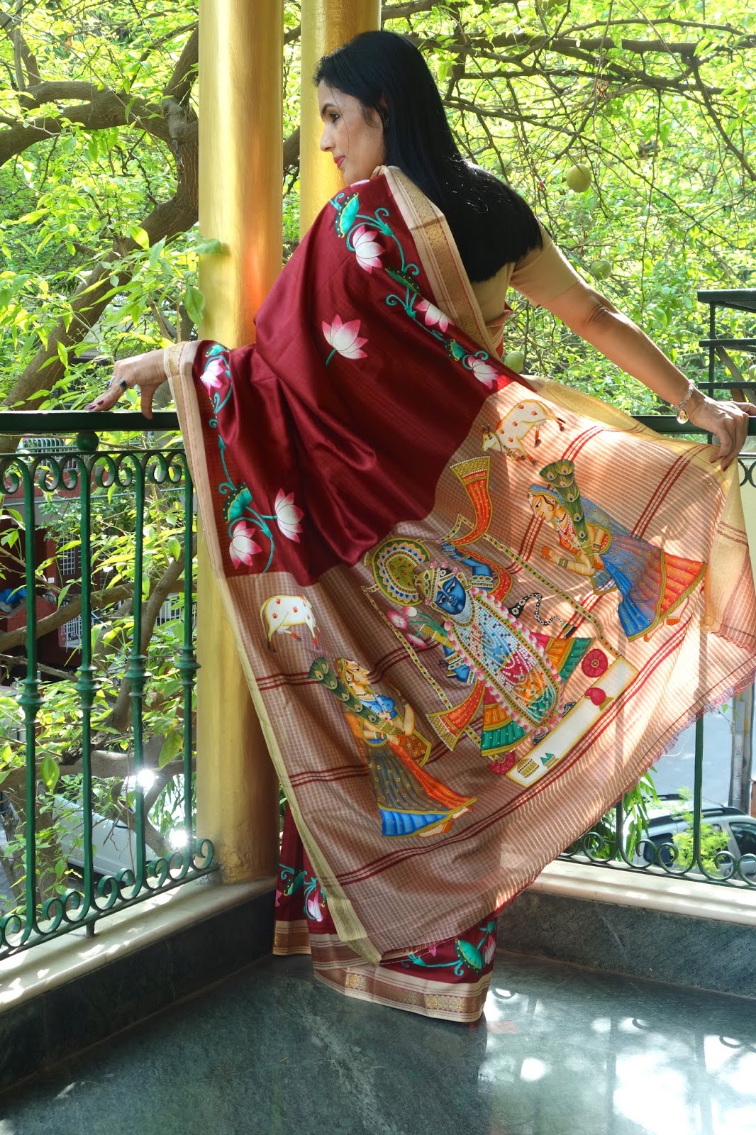 Sohum Sutras Pichwai Hand Painted Silk Saree