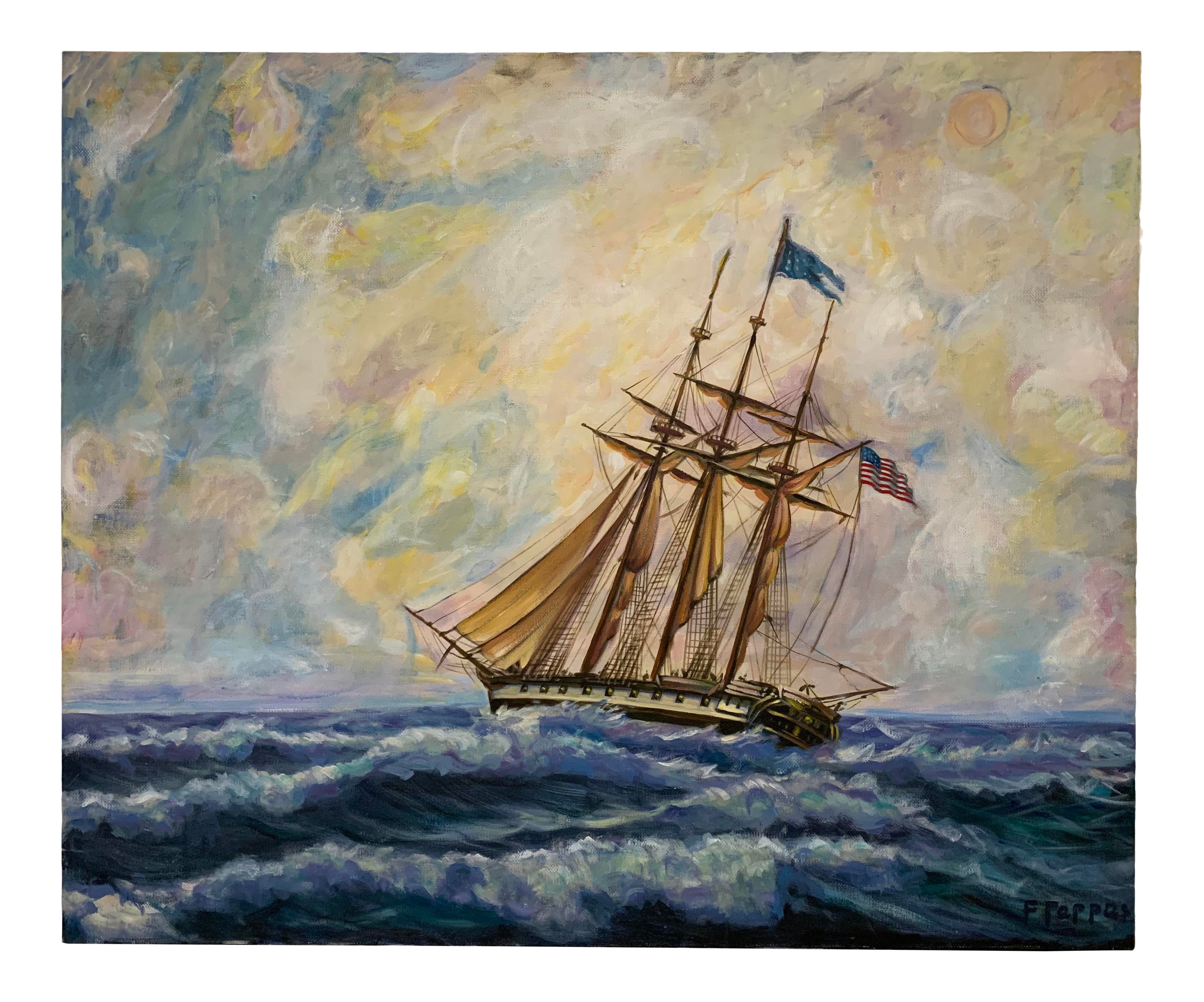 W Sopia Original Oil On Canvas Sailing Ship Seascape Painting