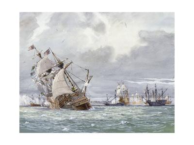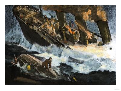 Painting Sinking Bill Burrass Ship Hms Matabele Editorial Stock