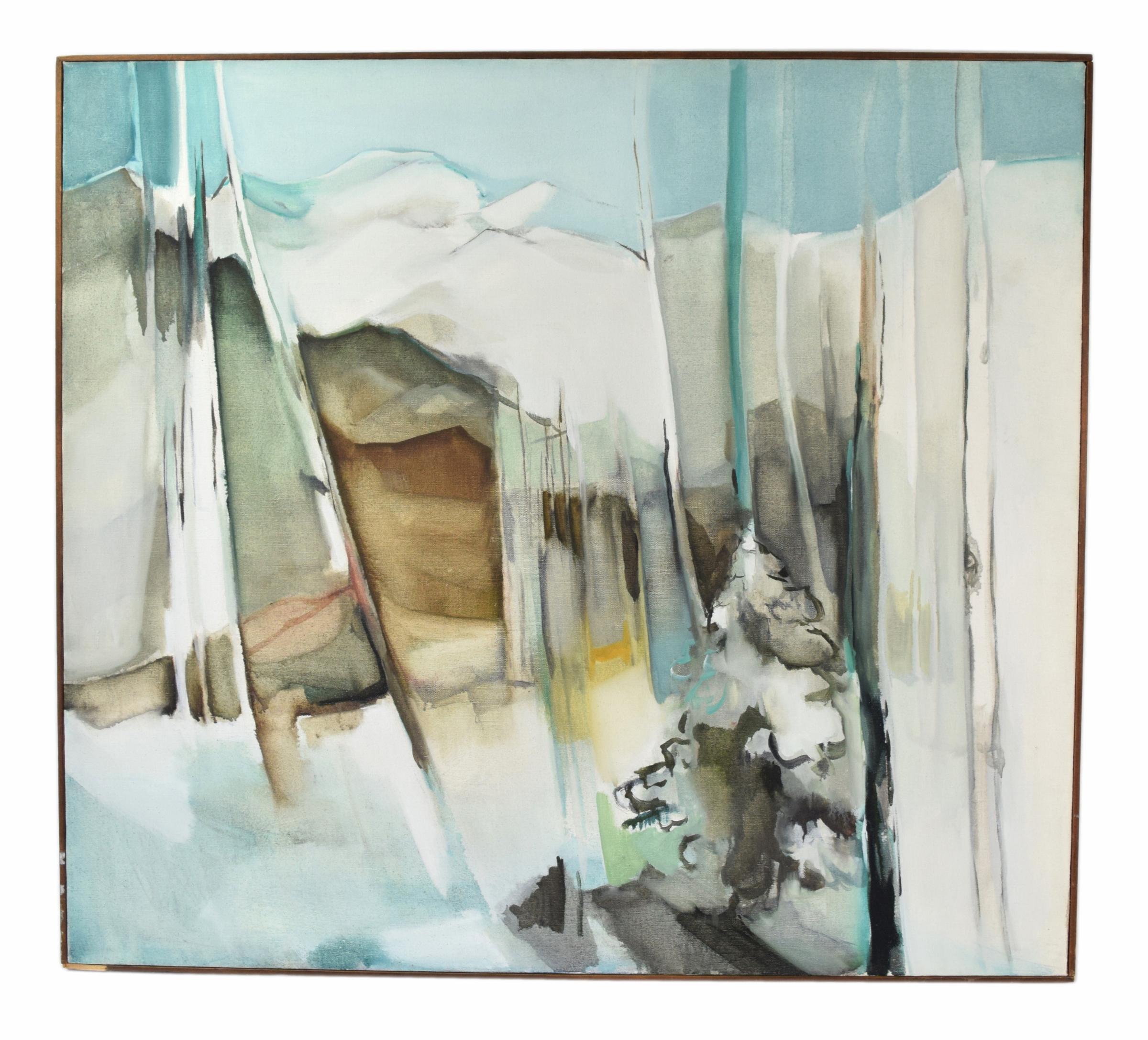Minimalist Abstract Gray Ombre Mountain Painting Snowy Mountain