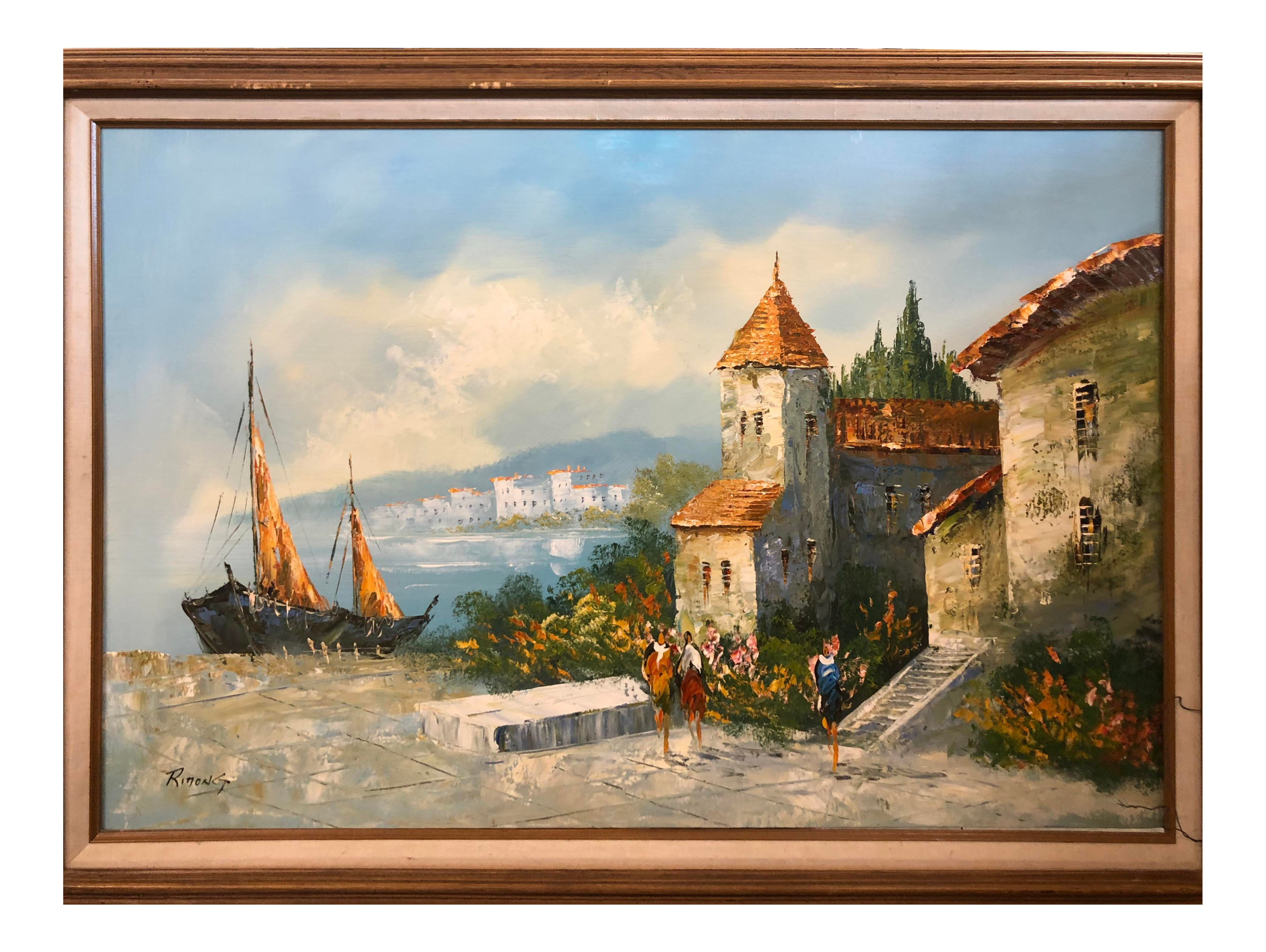 Painting Of A Mediterranean Seaside Village Postcard Zazzle Com