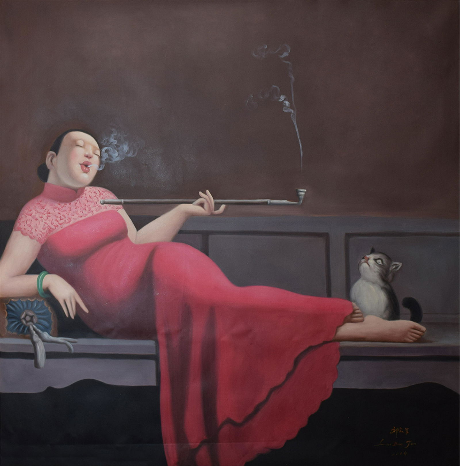Smoking Woman Hand Painted Chinese Oil Painting Art Chinese