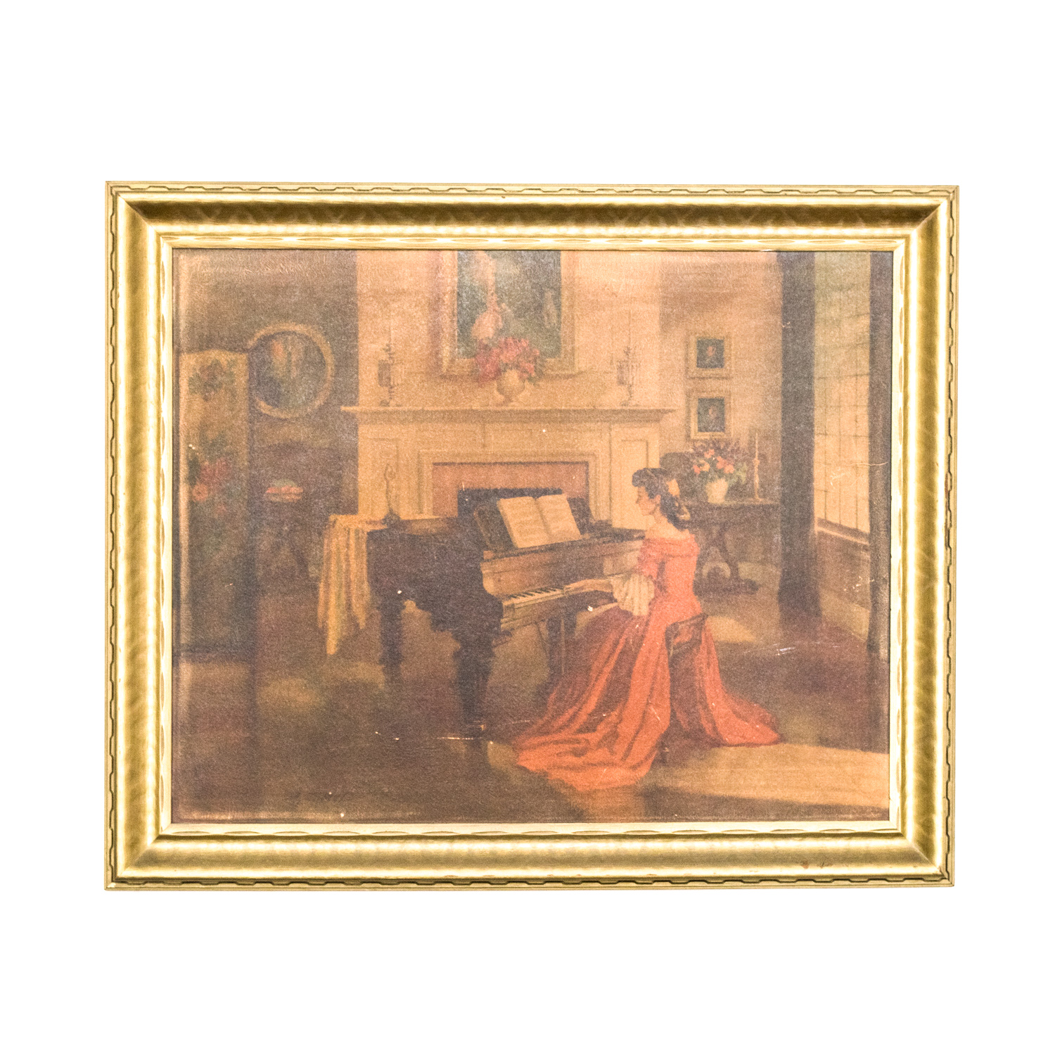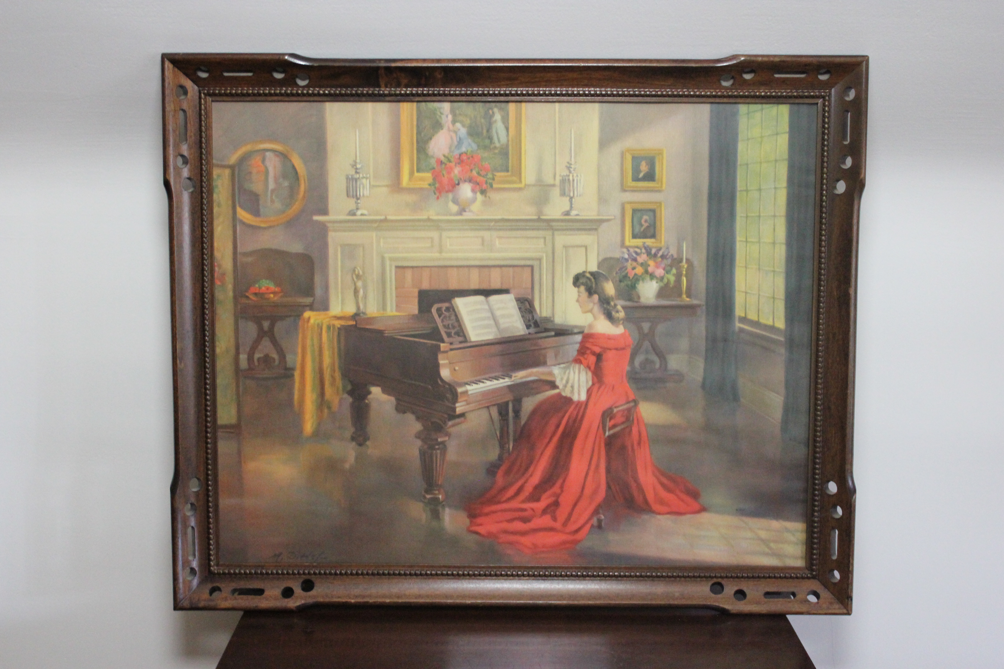 Vintage Antoni Ditlef Victorian Lady Piano Print Roses Allegro Art