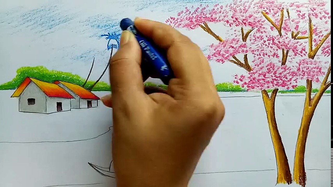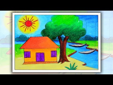 How To Draw Easy Scenery Step By Step For Kids Spring Season Landscape Youtube Landscape Drawing For Kids Landscape Drawings Drawing For Kids
