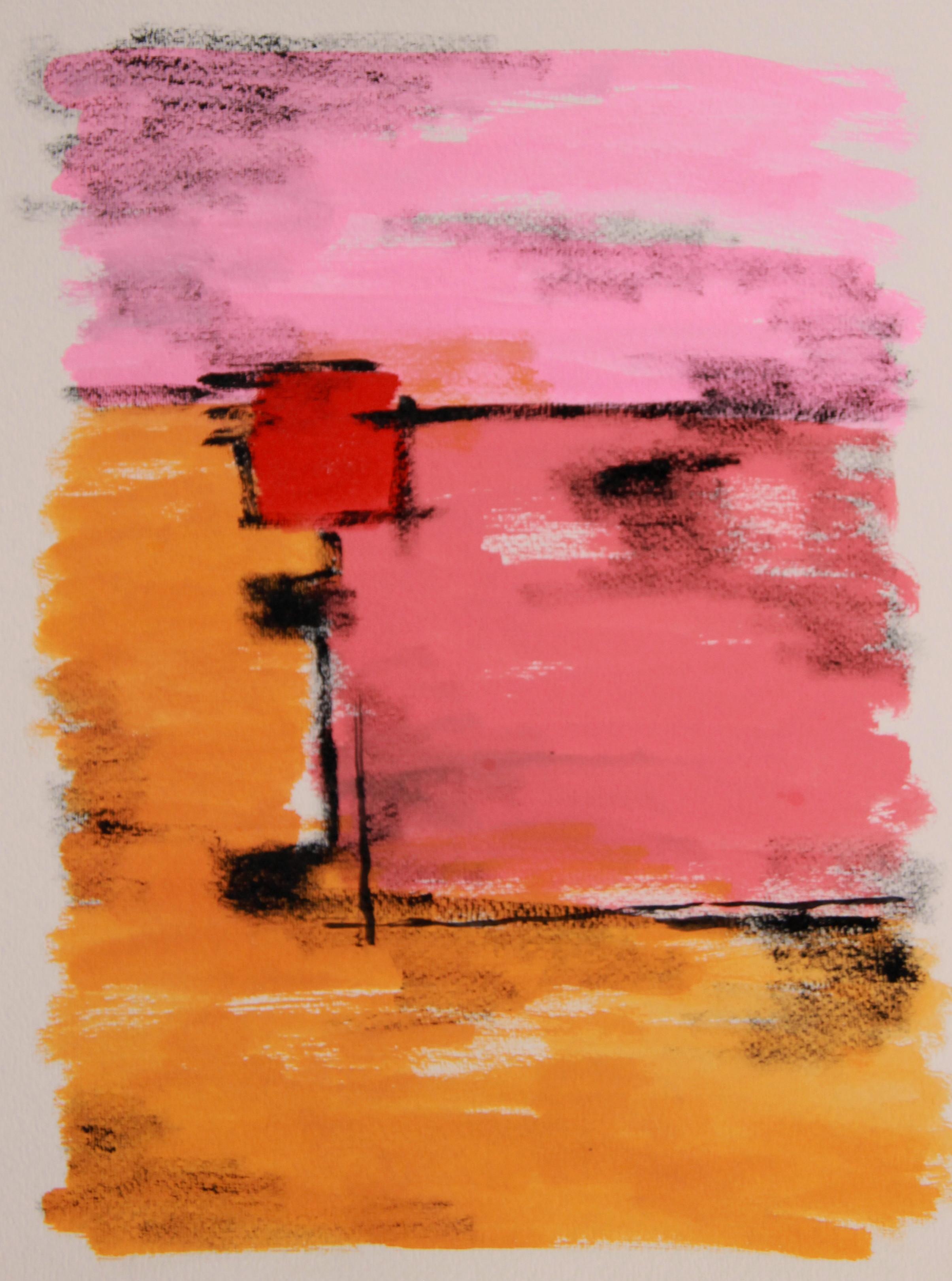Light Pink Composition With Double Frame Painted In Watercolor On