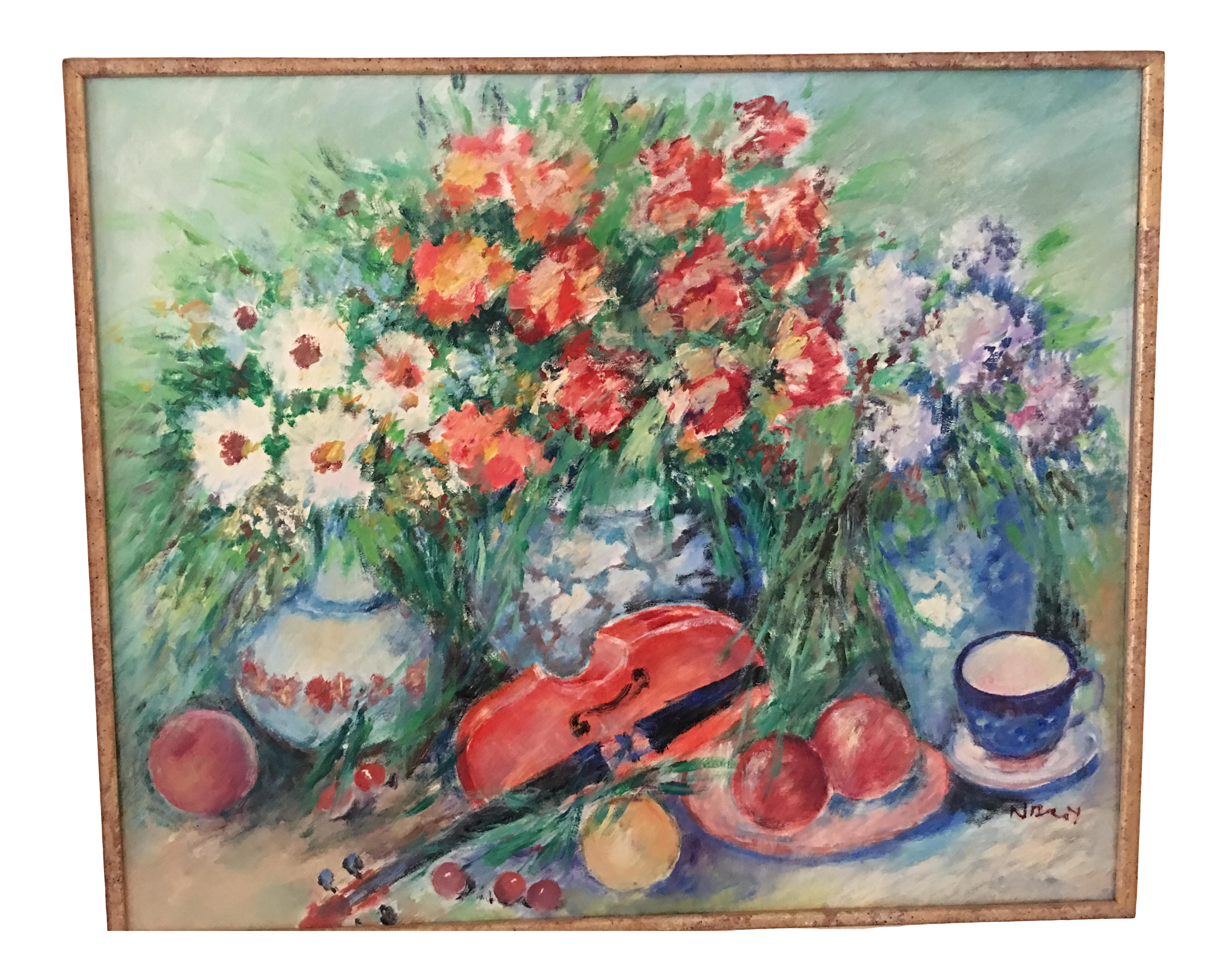 California Art Large Still Life In A Landscape Oil Painting Of
