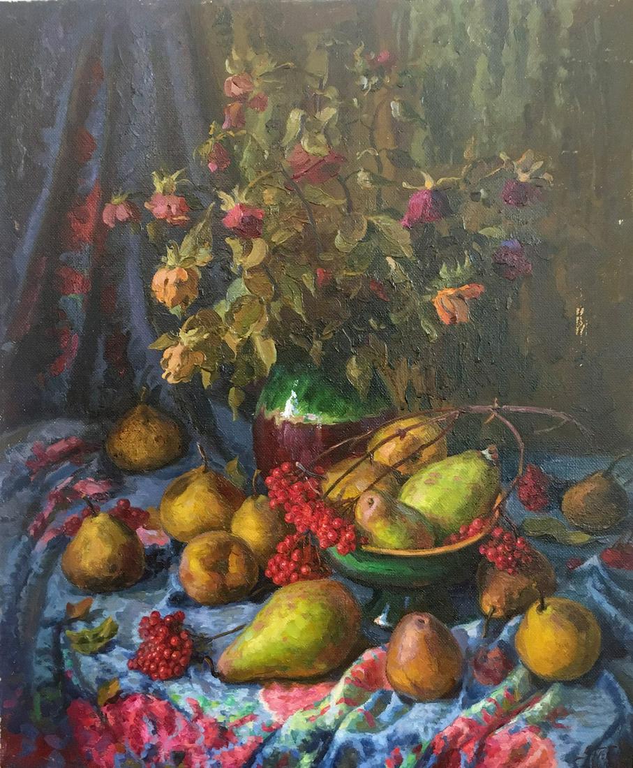 Flowers And Green Grapes Oil On Canvas One Of My Still Life