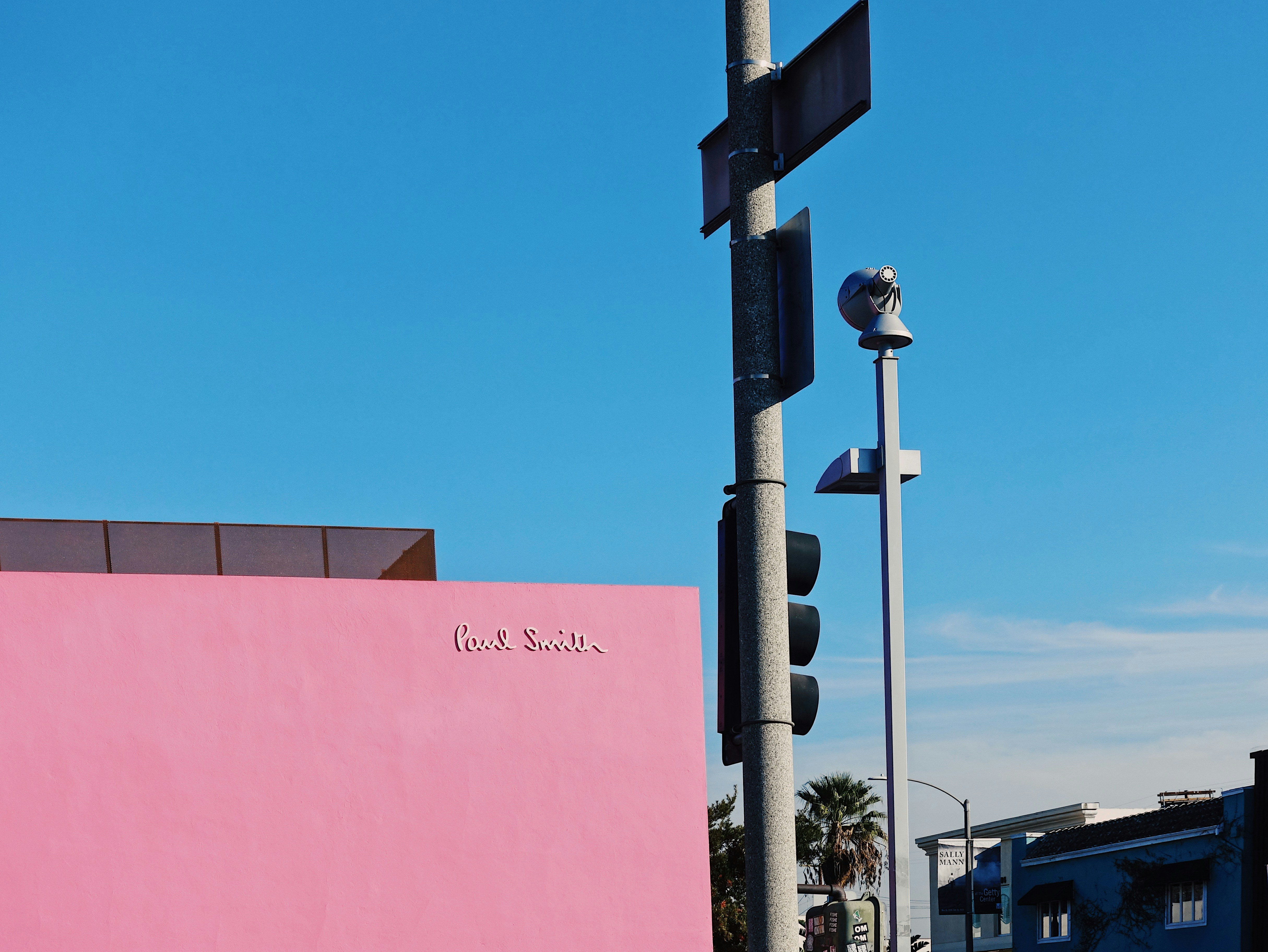 Man In Cap Sitting Beside Street Light Painted Wall Free Image