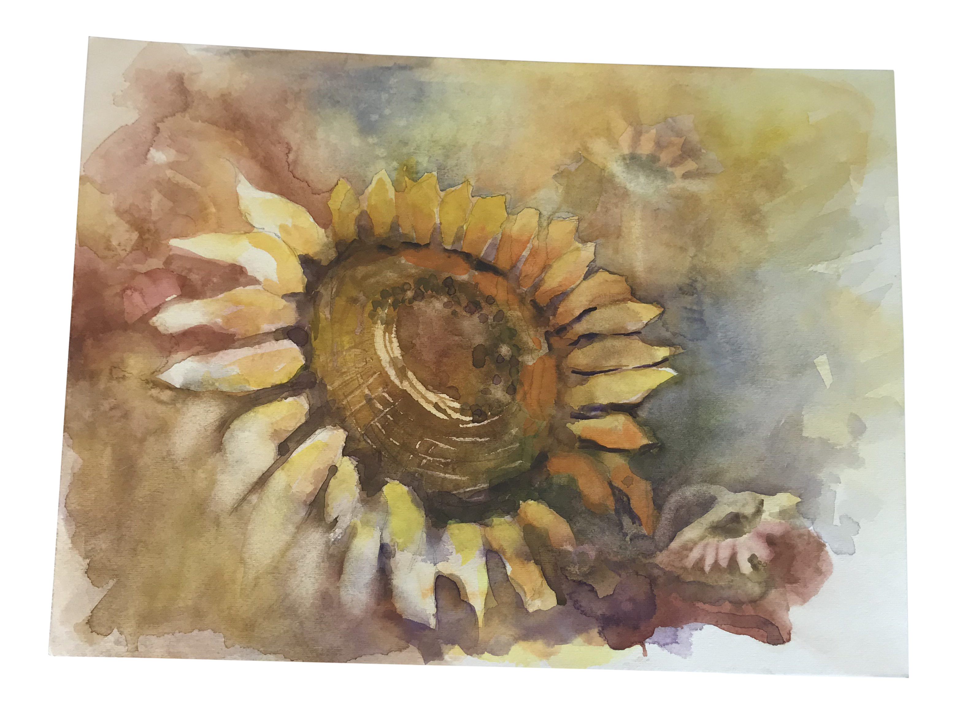 Watercolor Painted Sunflower Painted On Paper Single Flower