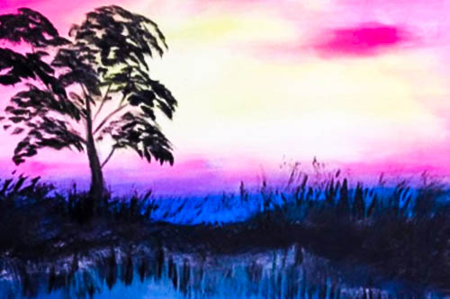 Digital Watercolour Painting Of Stunning Sunset Silhouette