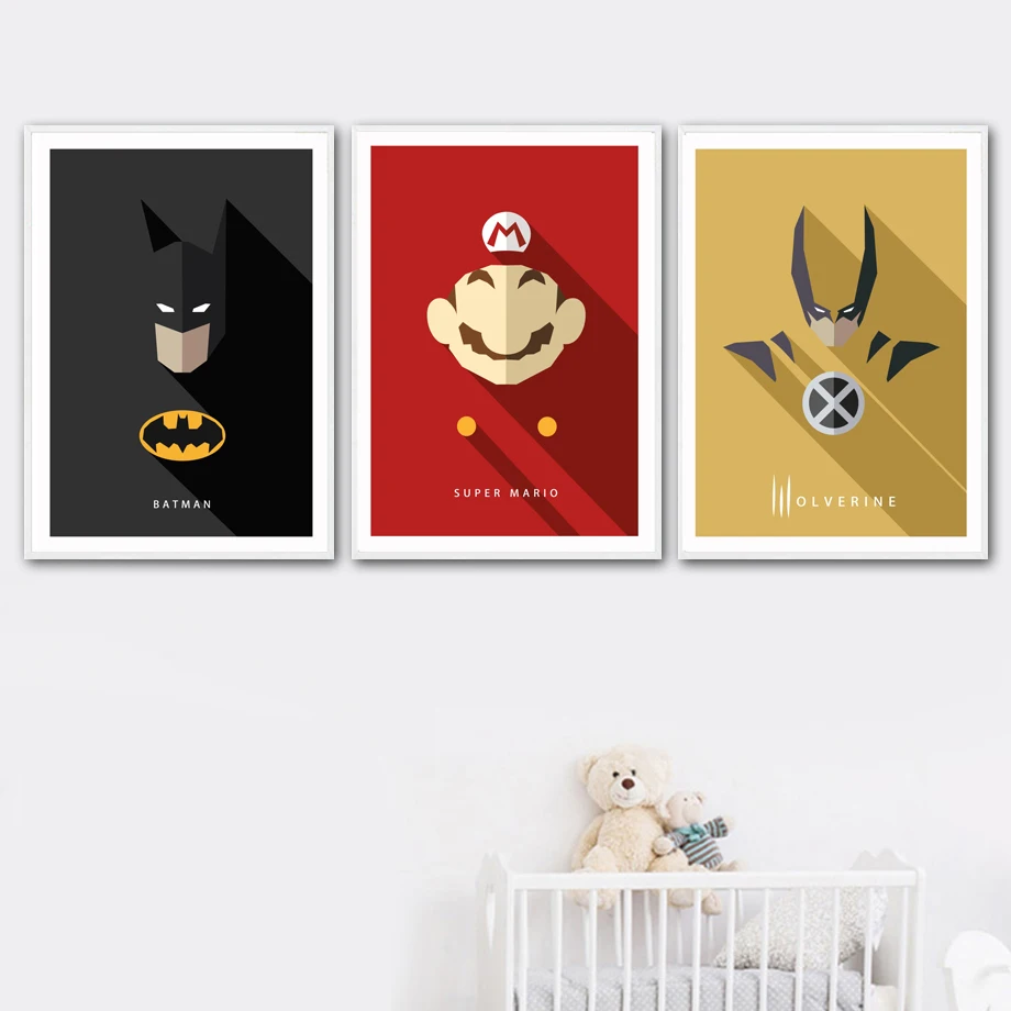 Superhero Wall Poster Colorful Cartoon Batman Nursery Prints