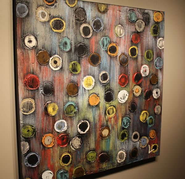 This piece is part of a fun series im doing each one is different and unique with different painted frames heads. This painting has wonderful color. 56 w x 25 12 h x 1 thickdeep. Wonderful colorful talking heads painting also etched details.