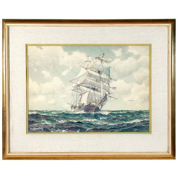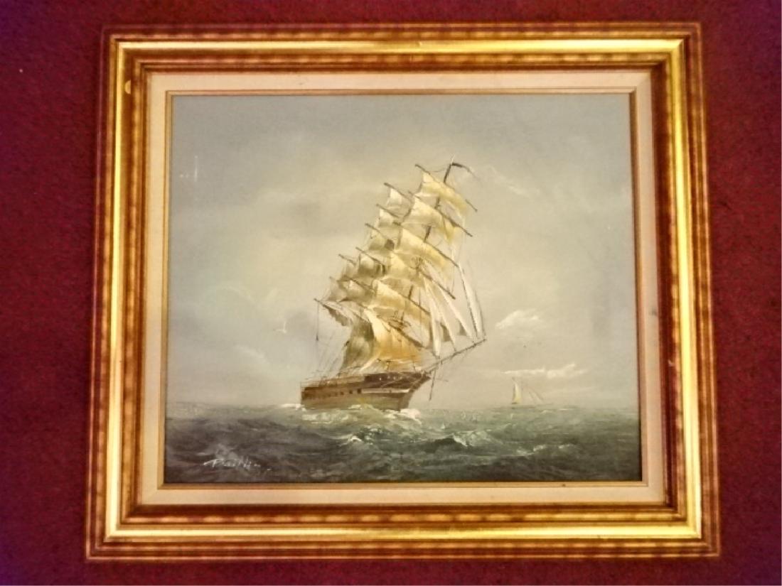 Huge Vtg Signed Original Seascape Oil Painting Gold Frame Clipper
