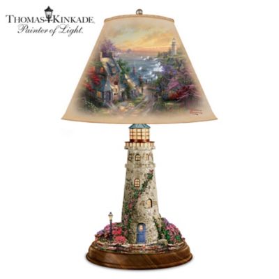 Thomas Kinkade Lamp With The Village Lighthouse Artwork On Shade