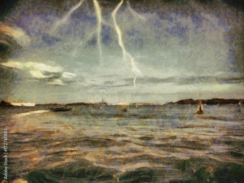 Oil Painting Landscape Stormy Sky Thunderstorm Clouds Etsy