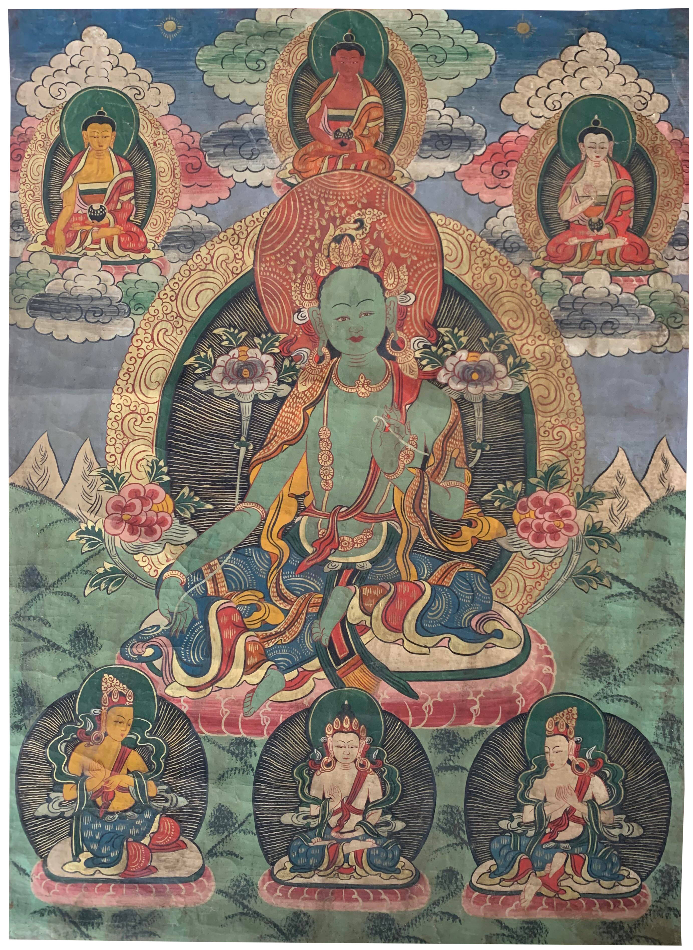 Hand Painted Green Tara Tibetan Thangka Art 12 X 16 Painting