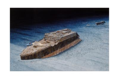 Painting Of The Sunken Titanic With The Submersible Alvin At The