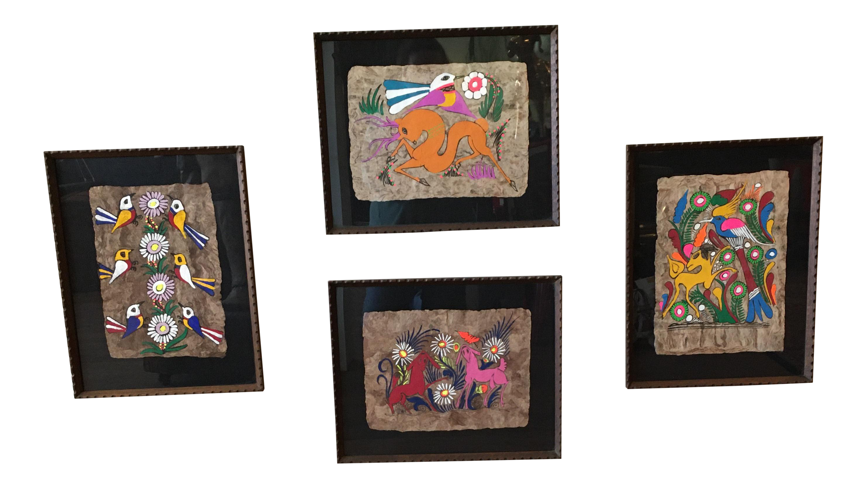 Vtg Mexican Amate Bark Paintings Etsy