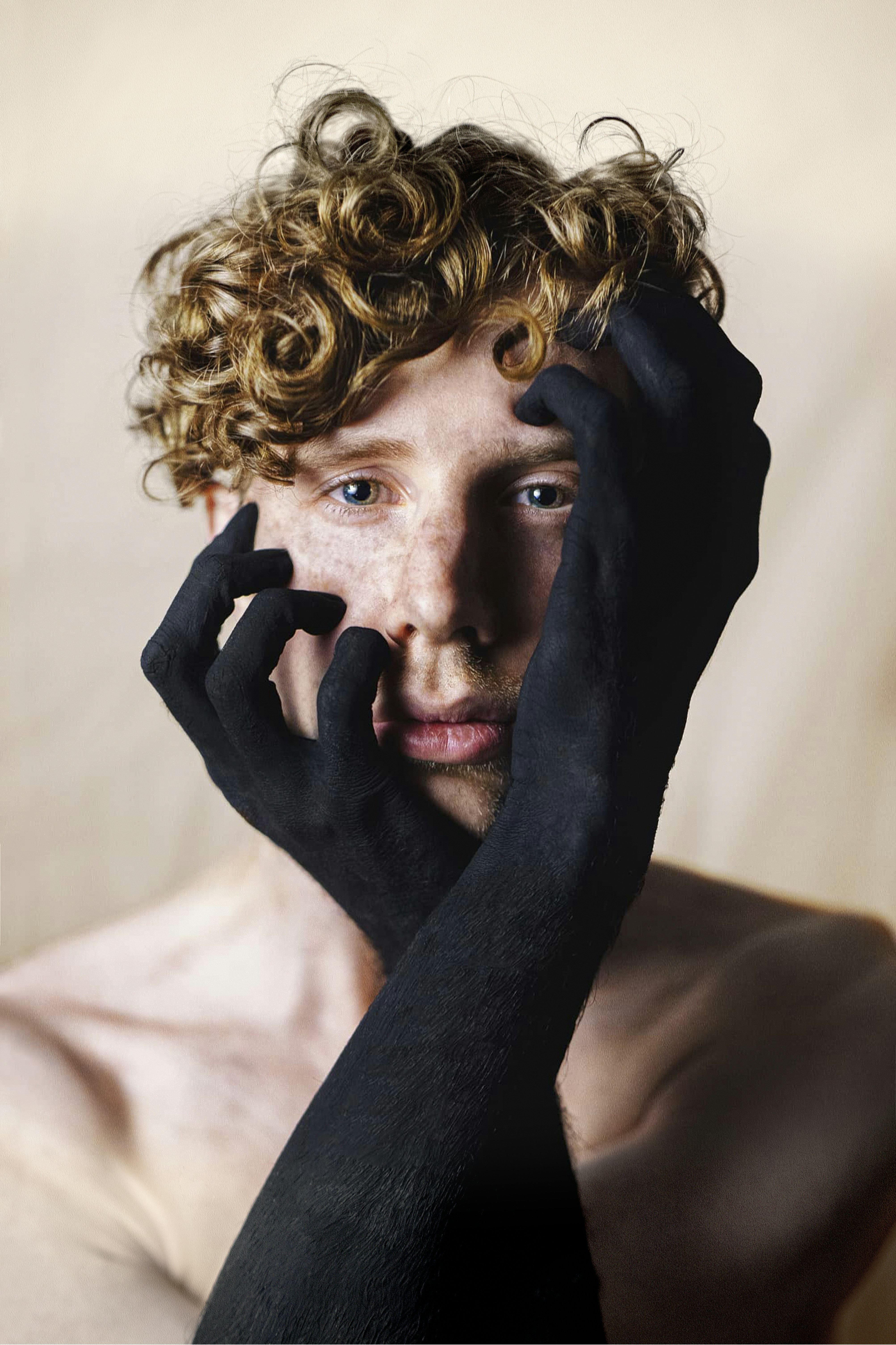 Hand Man Two Hands Are Touching Gray Background Images And