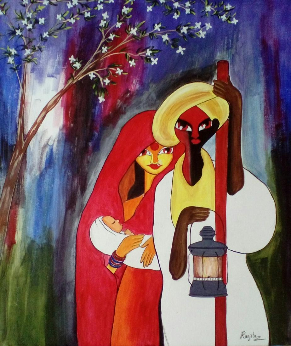 Village Couple Painting By Ramesh Chindam