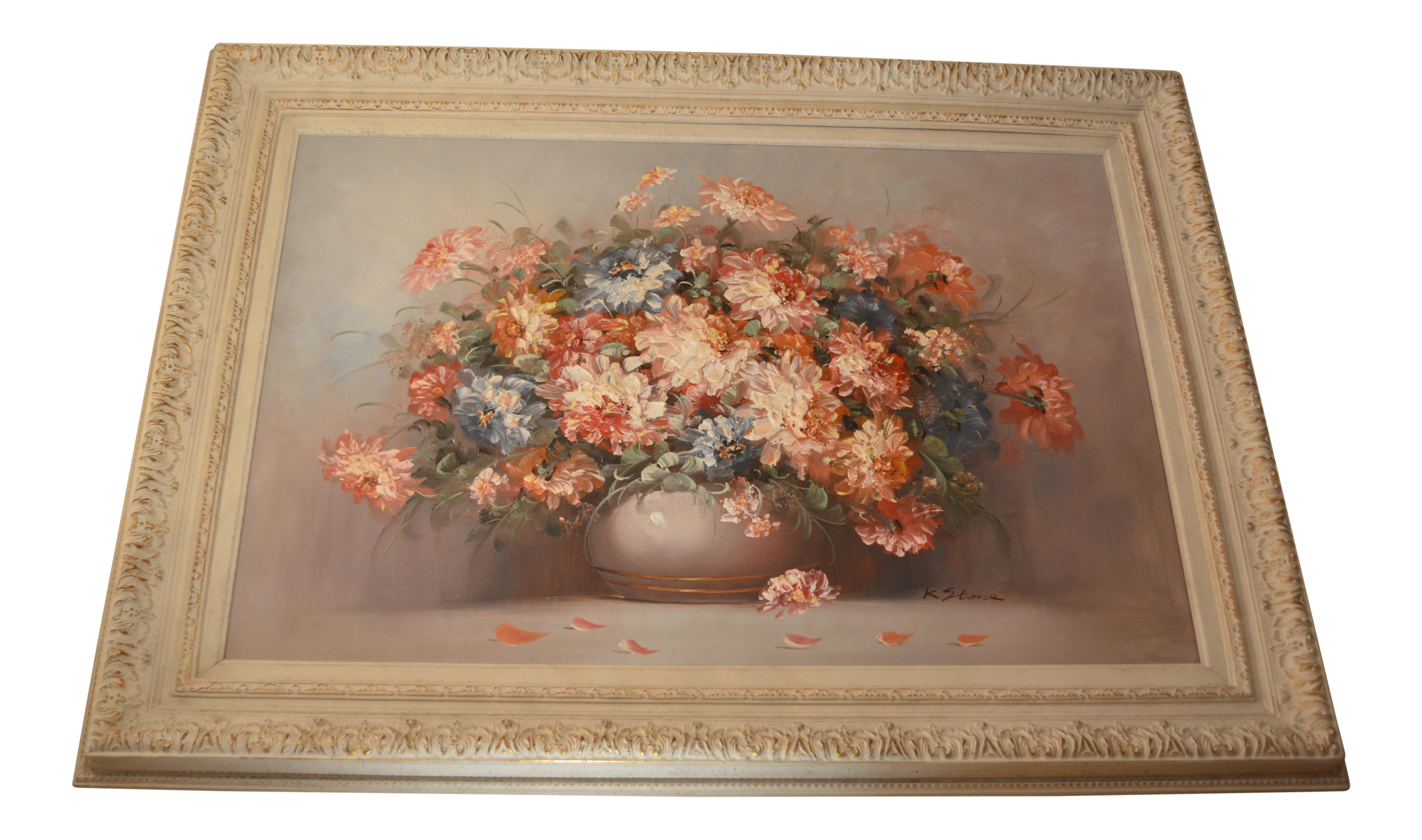 Floral Still Life Oil Painting In Ornate Carved White Frame Chairish