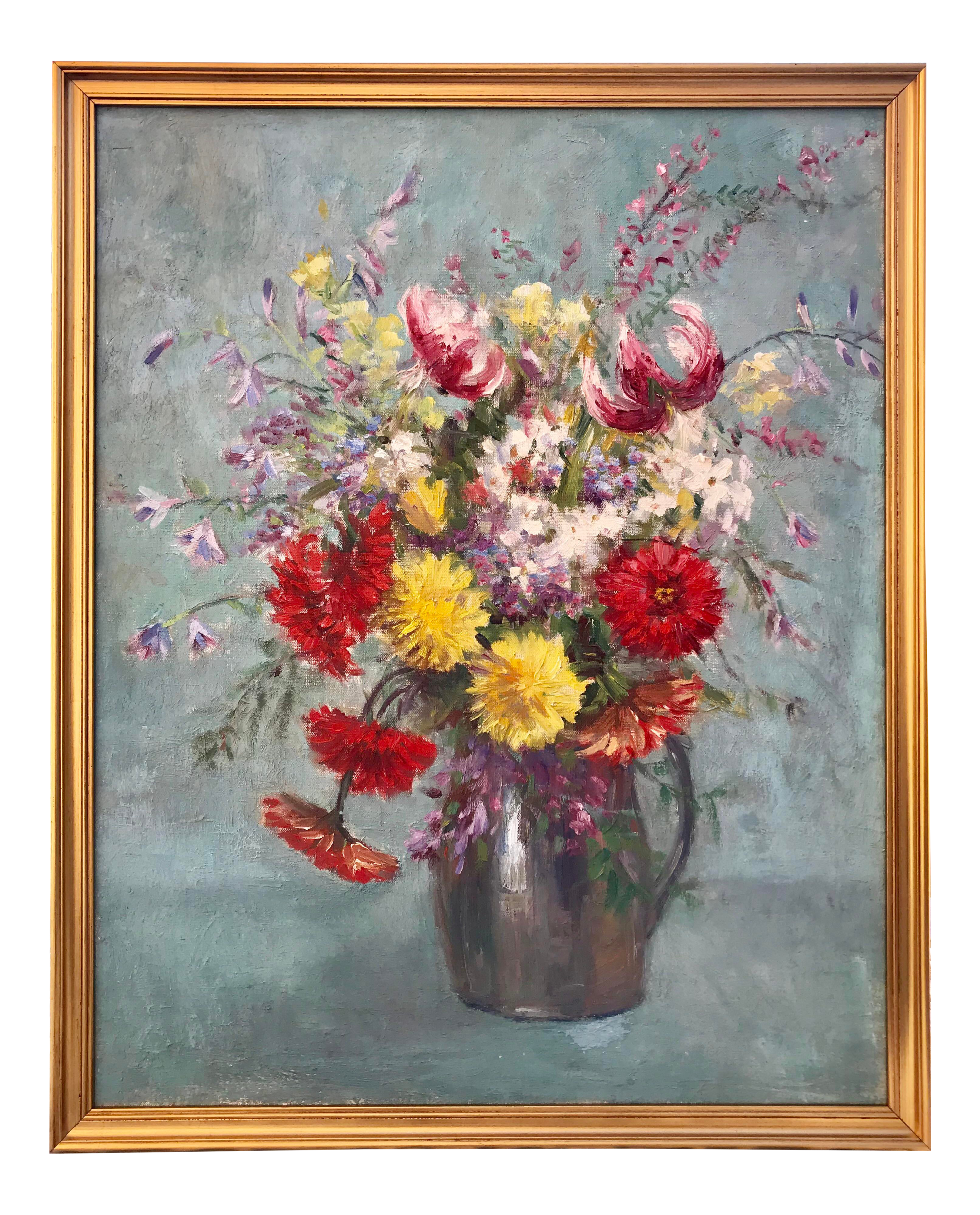 Vintage French Floral Painting Bouquet Flowers Signed Magnificent