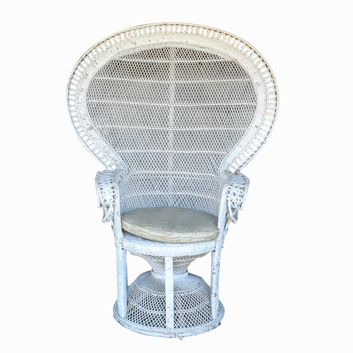 Vintage Asian White Peacock Back Wicker Chair Ebth