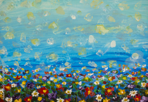White Daisy Painting Acrylic Soft Blue And Green Hues Etsy