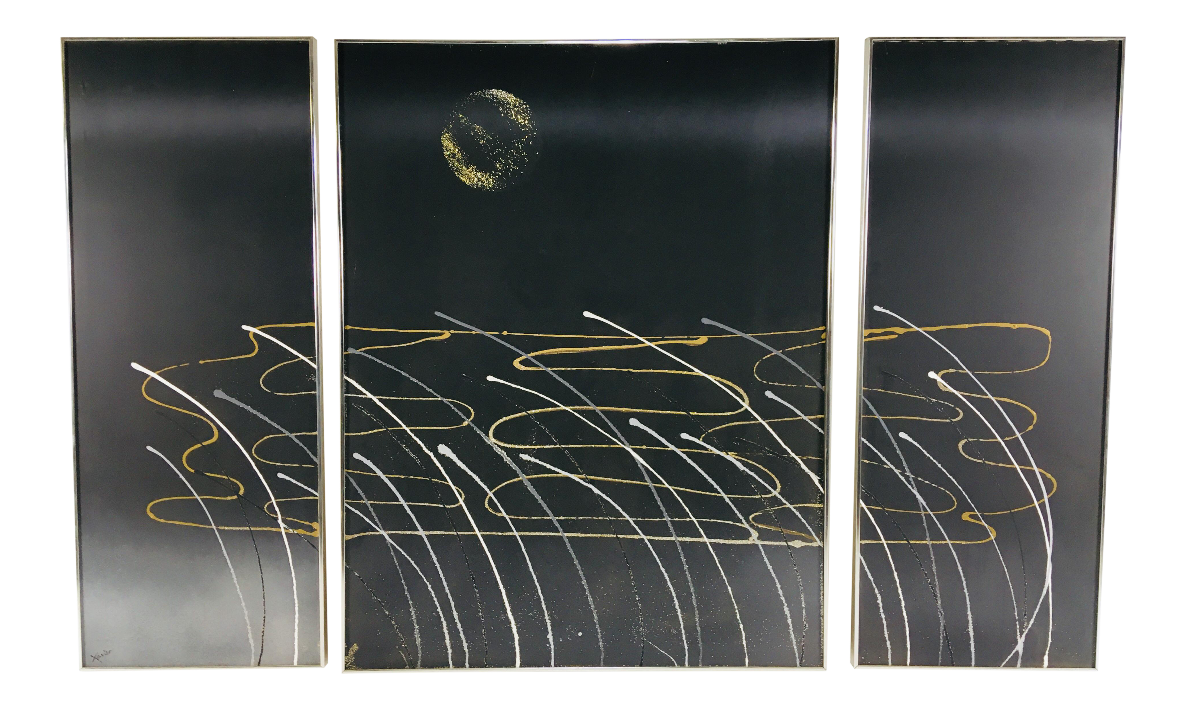 Giraffe White Painting Three Panel Black And White Abstract Art