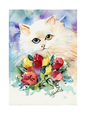 Lady And White Persian Cat Painting By Anya Heller