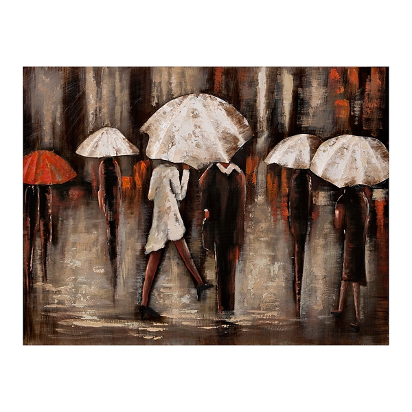 Original Art Abstract Painting Girl Red Umbrella White Red Dress