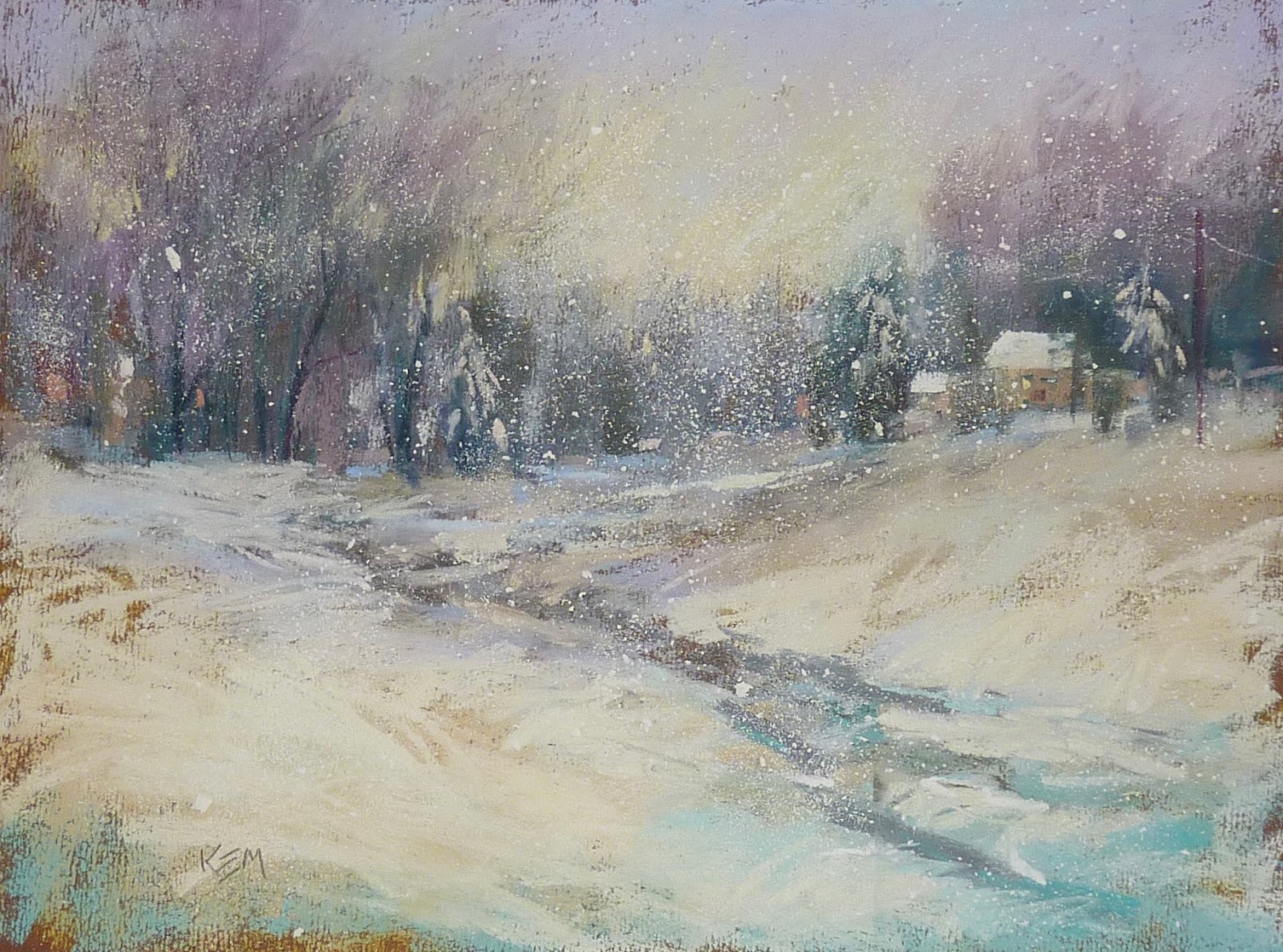 Winter Wonderland Snow Scenery Impressionist Painting 8x10 Art