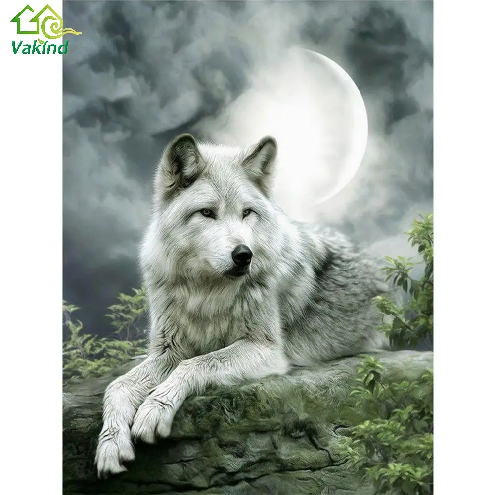 7 Diamond Painting Kit Wolf Moon Scenery Full Drill Mosaic