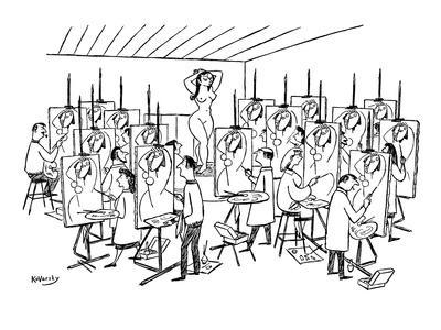 Artist Drawing Woman Model Painting At Art Workshop Man Character