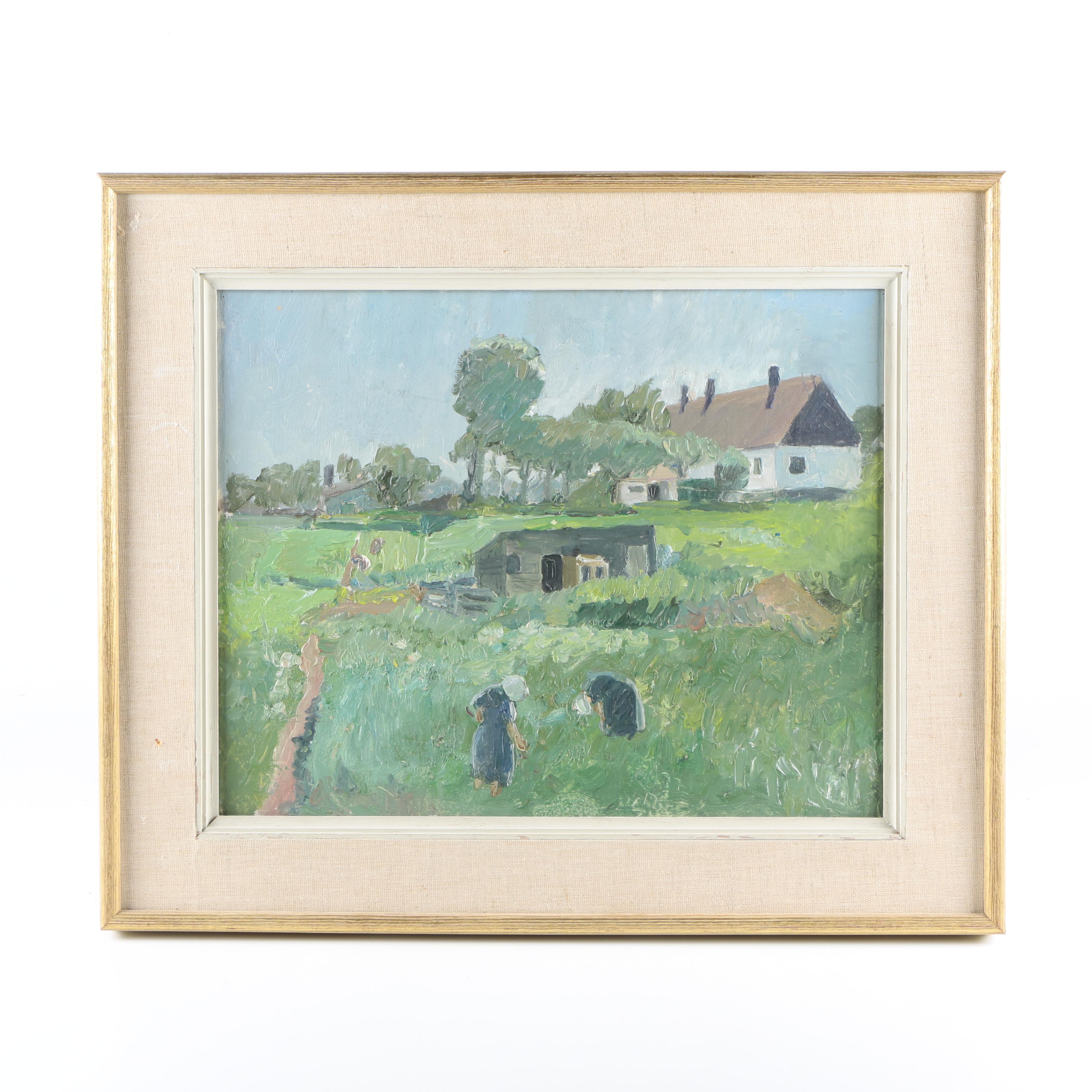 Oil Painting On Canvas Of Women Working In A Green Field Ebth