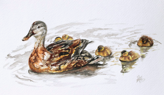 Original Watercolor Painting Of Ducks Realism The Devon Artist