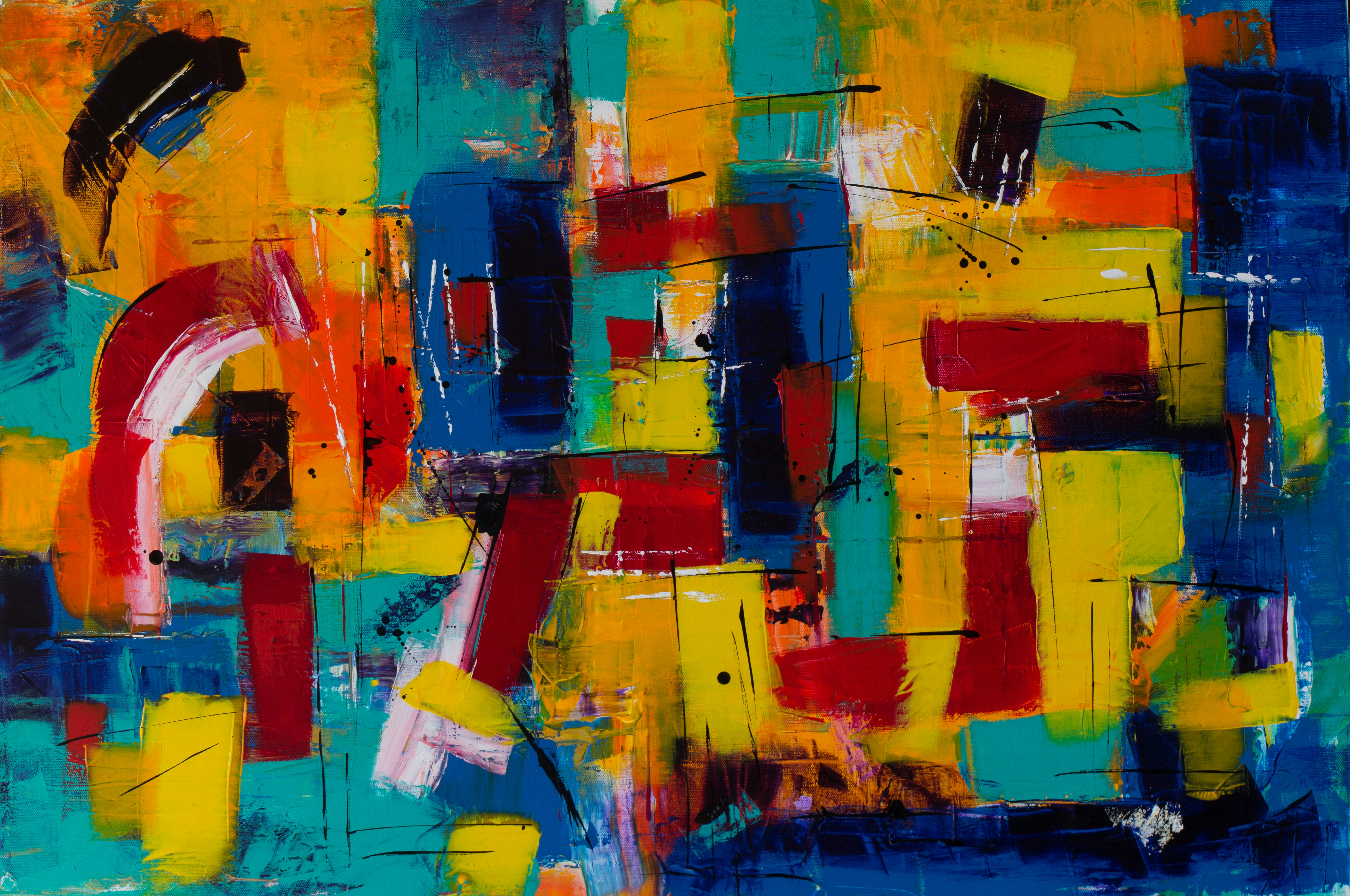 Yellow Blue Brown White Teal And Red Abstract Painting Free Image